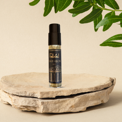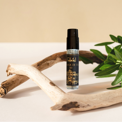 FULUAL SRLOLFACTORY NOTES Top Notes: Saffron and Jasmine Heart Notes: Amberwood and Ambergris Base Notes: Fir Resin and Cedarwood FORMAT: 2.5 ml